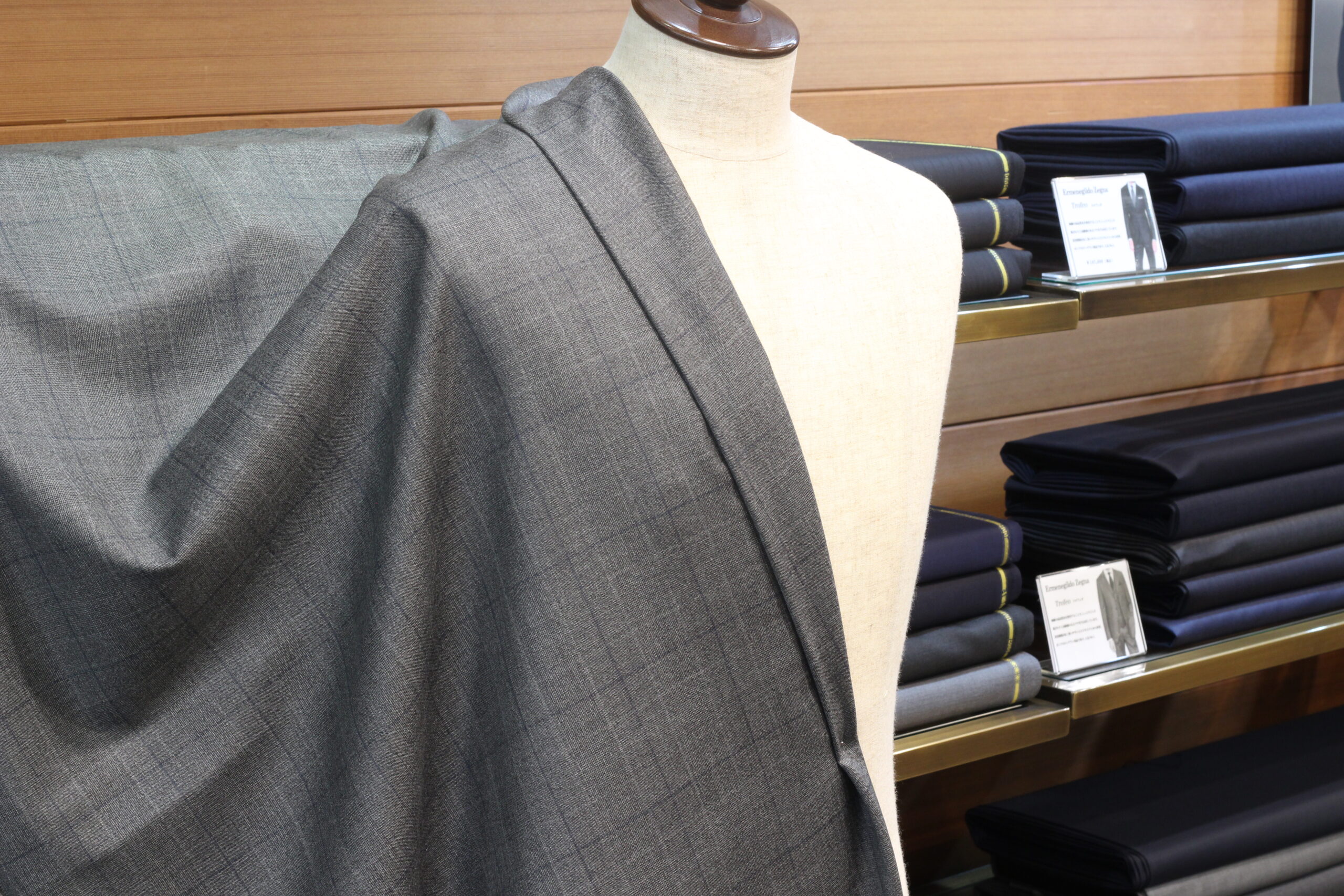 こちらの生地でコーディネートするなら、ワイシャツは白か水色。