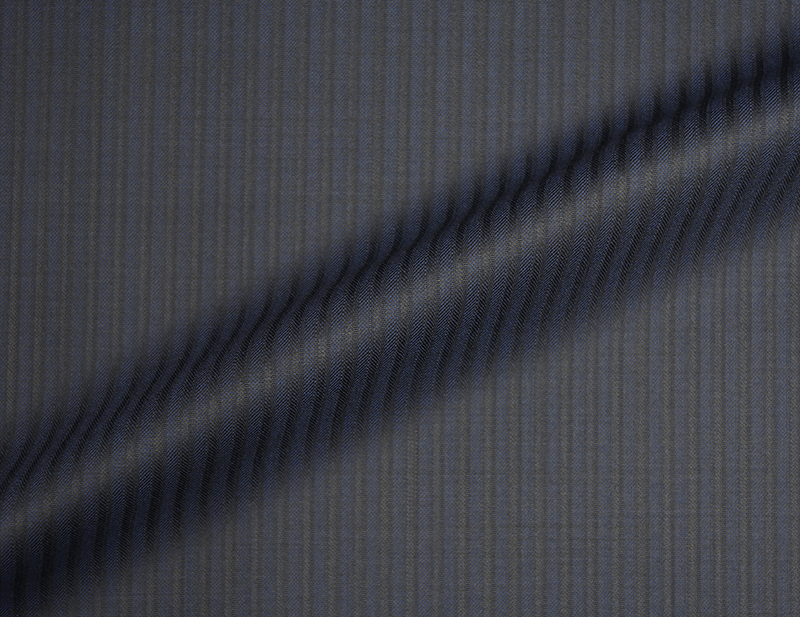ゼニア15ミルミル生地のネイビーのシャドーストライプ。色の濃淡が異なるストライプが陰と陽によって表情を変えます。