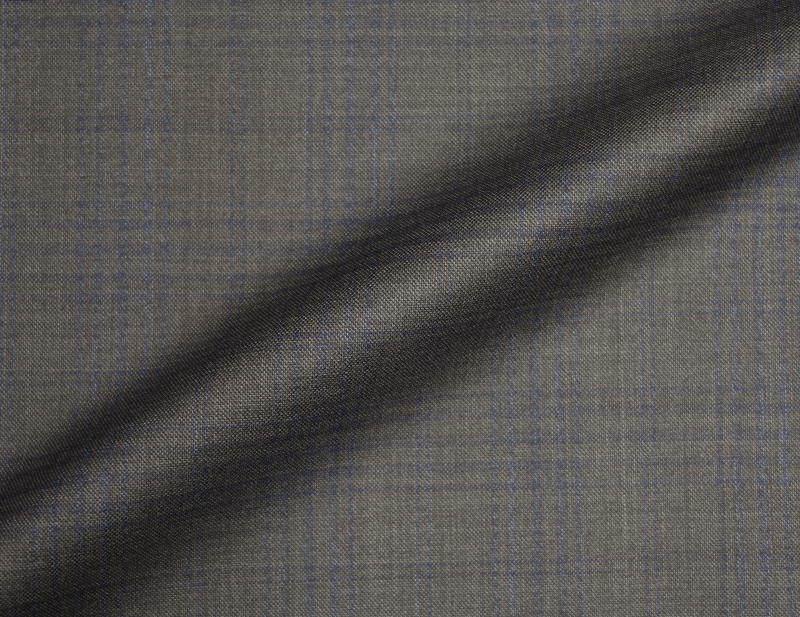 ゼニアトラベラー生地のグレーのチェック。格子の色はネイビーで構成されているので、ワイシャツやネクタイでブルー系と一緒にコーディネートがおすすめです。