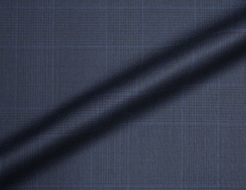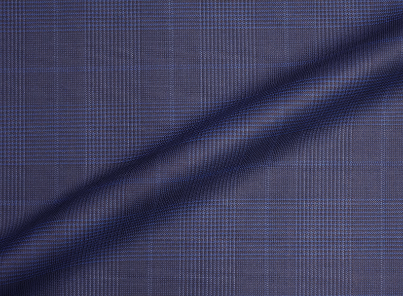 ゼニアトロフェオ生地のブルーのオーバーチェック。鮮やかなブルーで爽やかな印象を作り上げることができます。