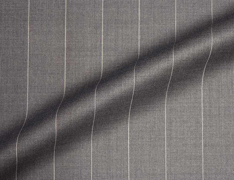 ゼニアトロフェオ生地のチャコールグレーのストライプ。線の幅は5㎜と目立ちずらいのでベーシックなスタイリングが可能です。