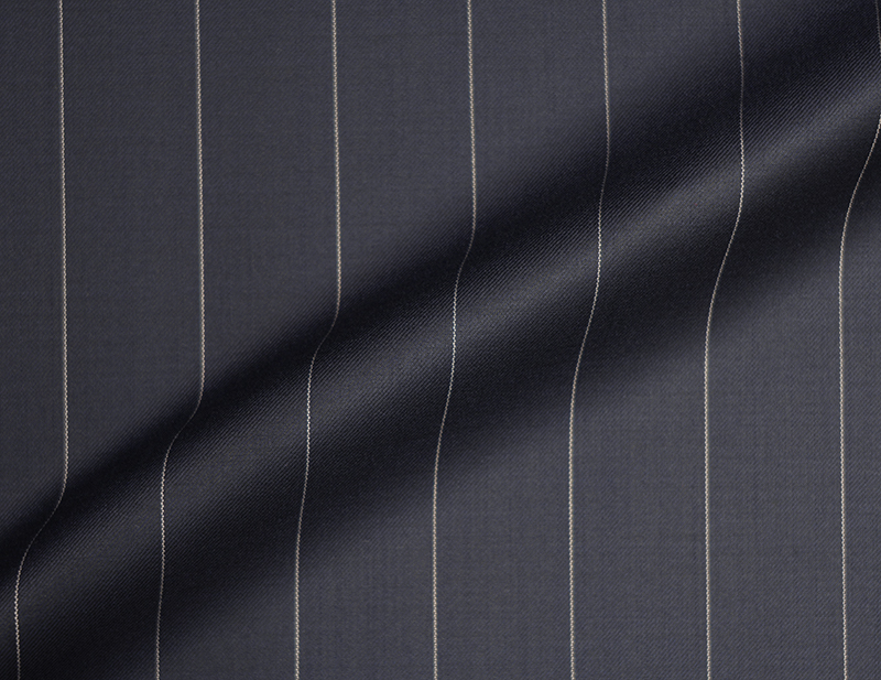 ゼニアトロフェオ生地の濃紺のワイドストライプ。広めのピンストライプでクラシカルな雰囲気を楽しめる1着になります。