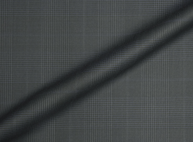ゼニアトロフェオ生地のチャコールグレーのピンチェック。無地のようで無地ではない、遠近の差で見え方が変わるので飽きのこない色柄です。