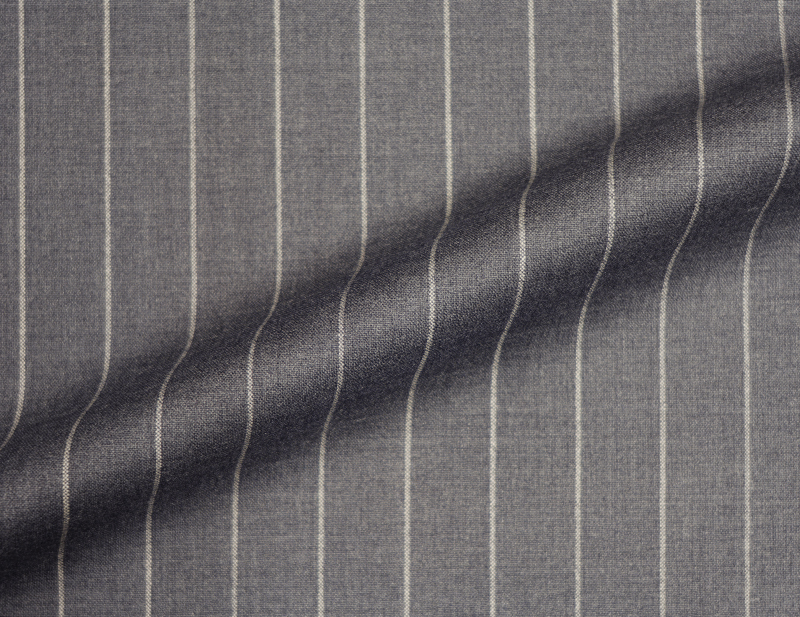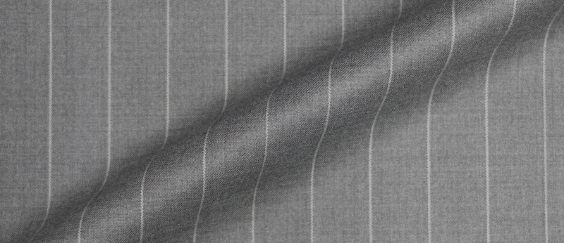 ゼニアトロピカル生地のグレーのペンシルストライプ。迫力のあるストライプと落ち着いたグレーは相性抜群。部門責任者の方などにおすすめです。