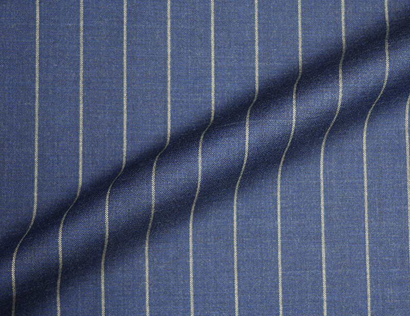 ゼニアトロピカル生地のブルーのペンシルストライプ。春夏らしいブルーにホワイトのストライプが走る爽やかな1着になります。