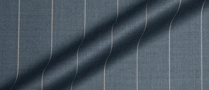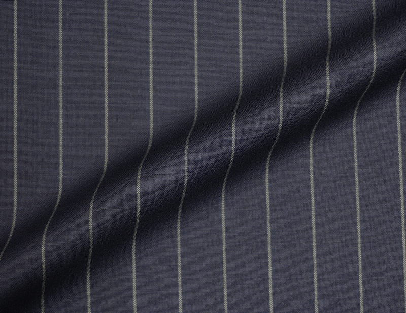 ゼニアトロピカル生地のネイビーのペンシルストライプ。ストライプの印象が力強く表現され、頼りがいのある雰囲気を作り上げます。